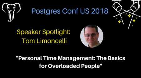 Tom will be presenting a half-day training on Monday, April 16 on "Personal Time Management: The Basics for Overloaded People." Read what he has to say about Postgres and why to attend his session: