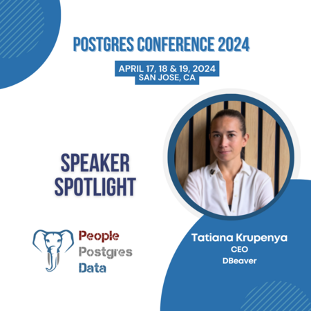 Tatiana Krupenya is CEO of DBeaver Corp, an information technology company with many years of experience developing database management tools. DBeaver has created a full-featured data solution that easily adapts to users' needs, from open-source tools to all-in-one enterprise software. PostgreSQL is one of the most popular databases among DBeaver users.